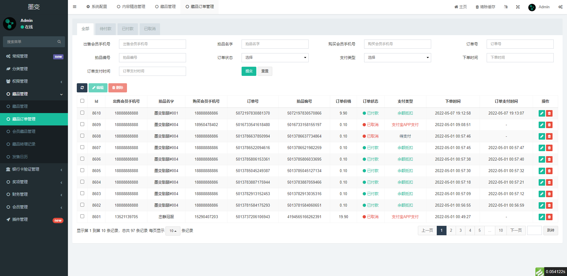 - 盲盒模式:后台发布主要商品,可以添加多个同类的子商品,下单购买,随机获得