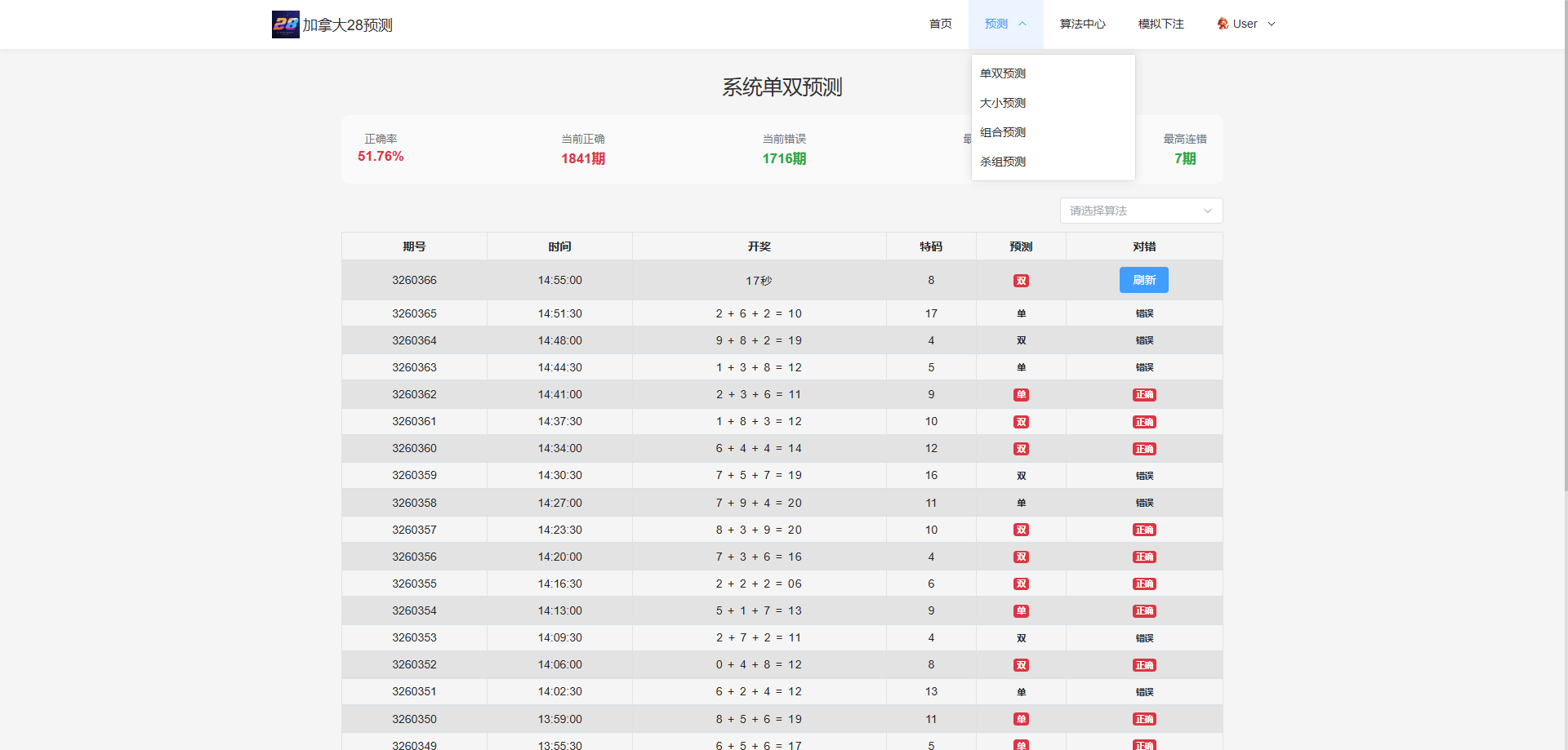“加拿大28预测系统”是一款专为加拿大28彩票游戏设计的智能分析工具,基于独家算法和数据分析技术,提供单双预测、大小预测、组合预测等核心功能。系统通过实时采集历史开奖数据,结合多维度算法模型,为用户提供高概率的投注参考方案,并以简洁直观的界面呈现预测结果与历史记录。后端ThinkPhp框架,前端使用vue3框架